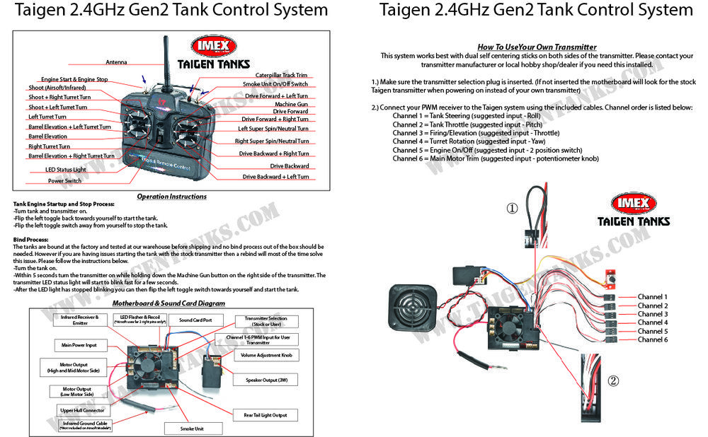 Система радиоуправляемая Taigen танковая 2.4G V2 (пульт, приемник и динамик)