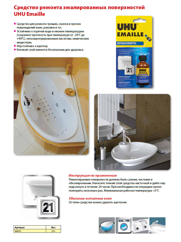 Клей для ремонта эмалированных поверхностей UHU Emaile, 23 г, блистер