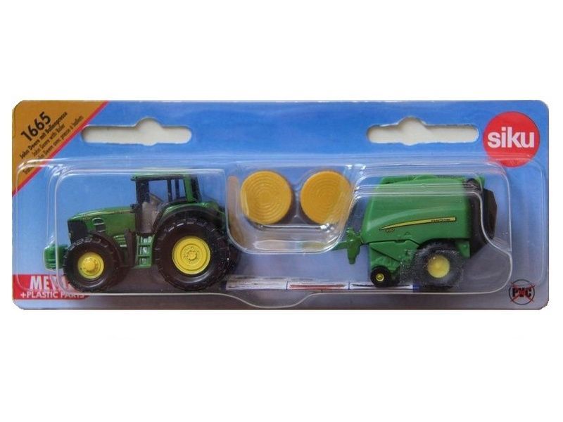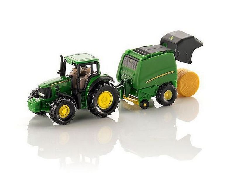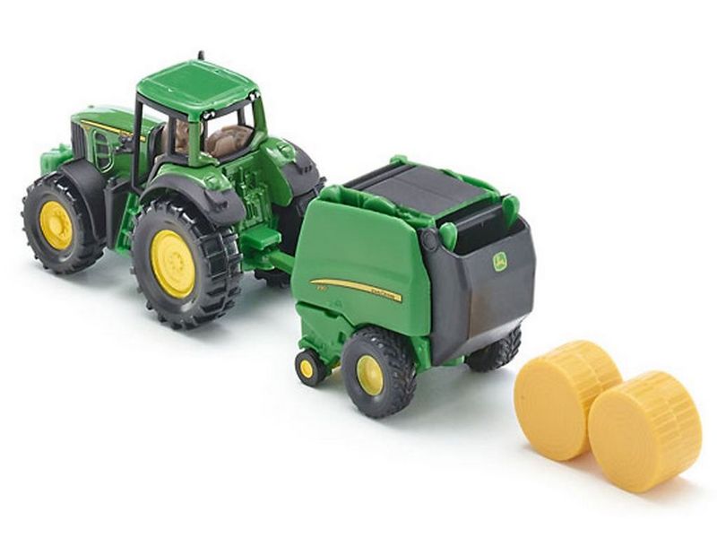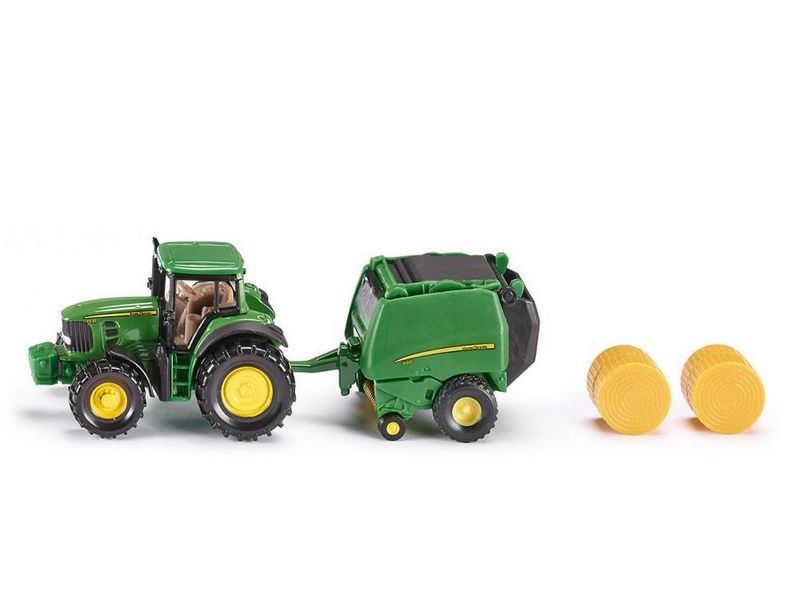 Игрушечная модель трактора с пресс-подборщиком от Siku. Игрушка сможет познакомить ребенка со сложной сельскохозяйственной техникой, а также станет достойным пополнением для коллекционеров. Трактор John Deere с пресс-подборщиком для формирования снопов из сена выполнен в классическом зеленом цвете и выглядит очень реалистично.