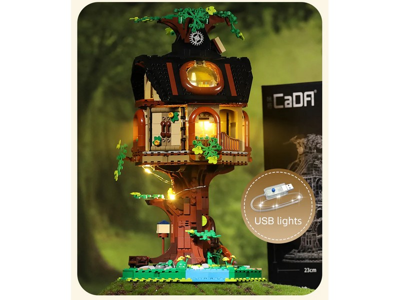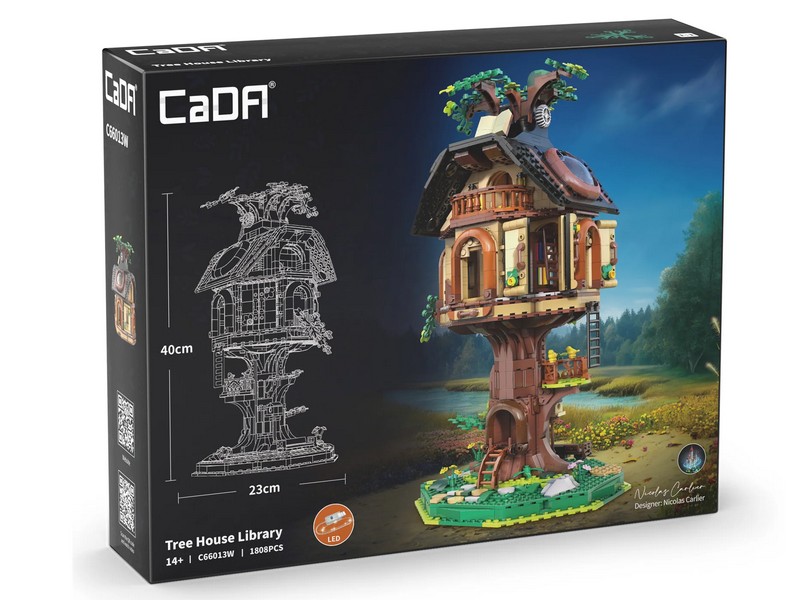 Конструктор от CADA для постройки Библиотеки на дереве. Набор состоит из 1808 элементов и позволяет самостоятельно собрать уникальную модель в форме домика на дереве с яркими и естественными цветами и богато украшенными деталями.