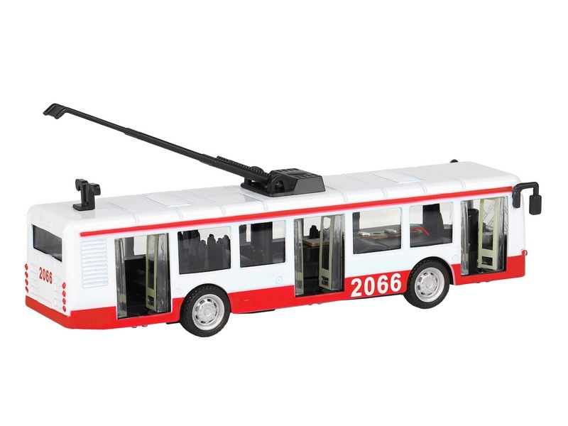 Инерционная игрушка Троллейбус, выполненная из высококачественного металла и пластика, непременно понравится и ребенку, и взрослому. Троллейбус – один из старейших видов общественного транспорта для перевозки пассажиров. Игрушечная модель оснащена металлическим корпусом, вращающимися колесами из резины.