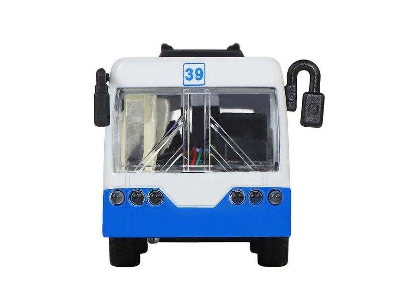 Игрушка оснащена инерционным ходом. Для того, чтобы трамвай поехал вперед, необходимо его отвести назад, а затем отпустить.