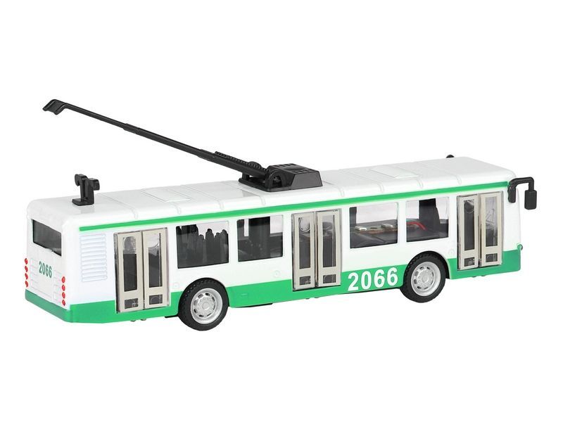 Инерционная игрушка Троллейбус, выполненная из высококачественного металла и пластика, непременно понравится и ребенку, и взрослому. Троллейбус – один из старейших видов общественного транспорта для перевозки пассажиров. Игрушечная модель оснащена металлическим корпусом, вращающимися колесами из резины.