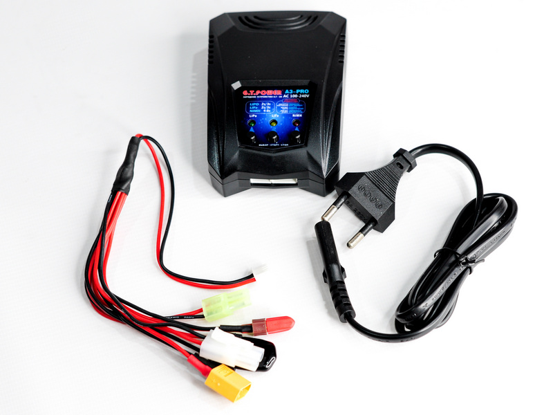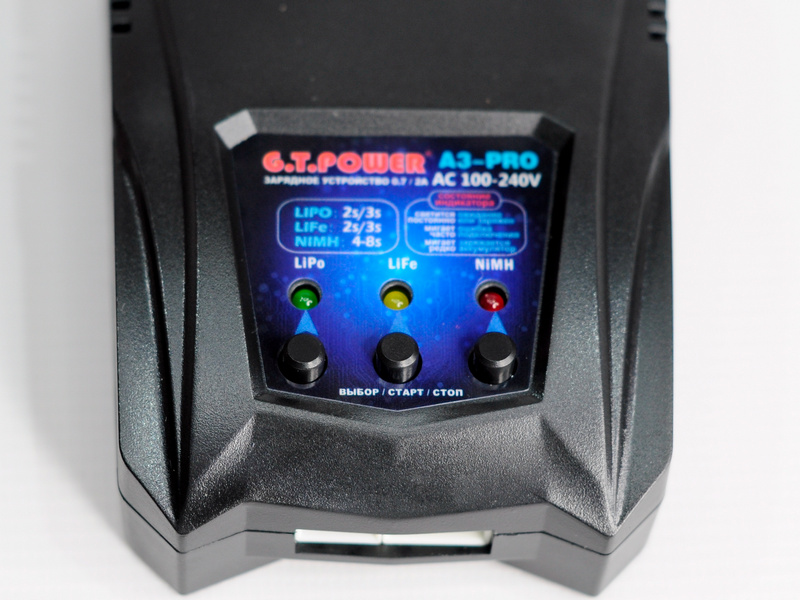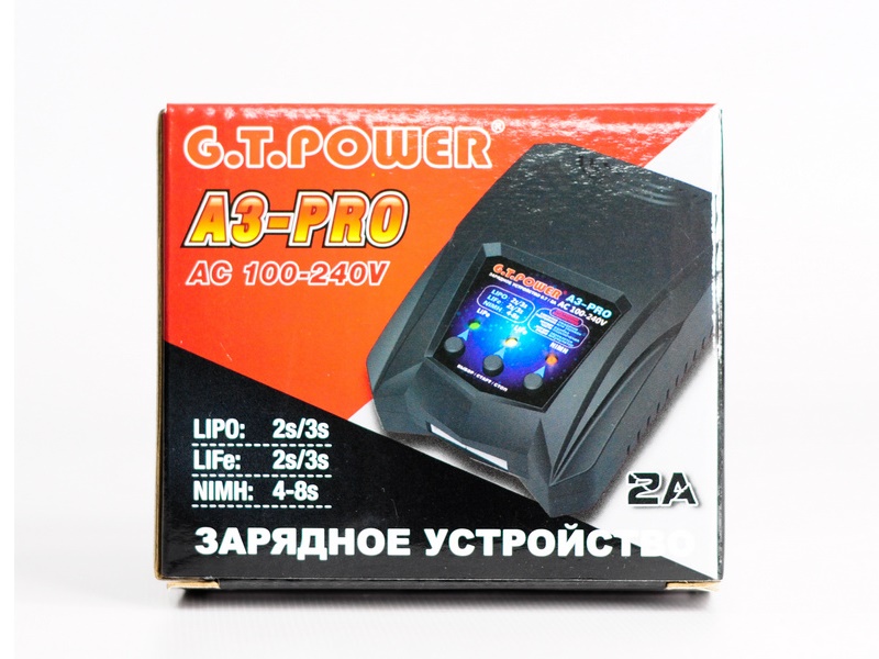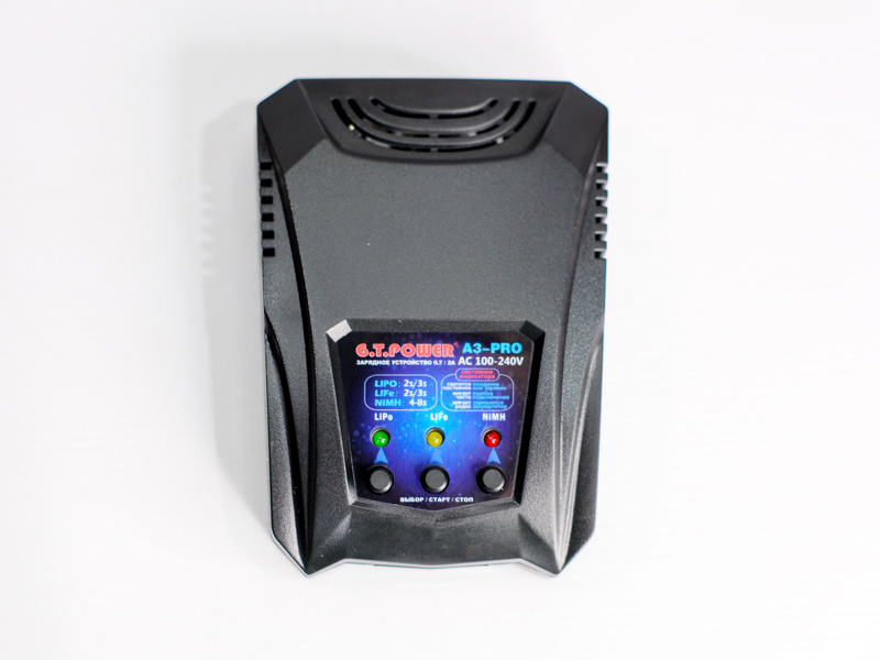 Зарядное устройство G.T.Power A3 PRO, которое может зарядить NiCd/NiMH, LiPo, LiFe аккумуляторы с максимальным током 2.0A. A3 PRO работает от сети 220 В.