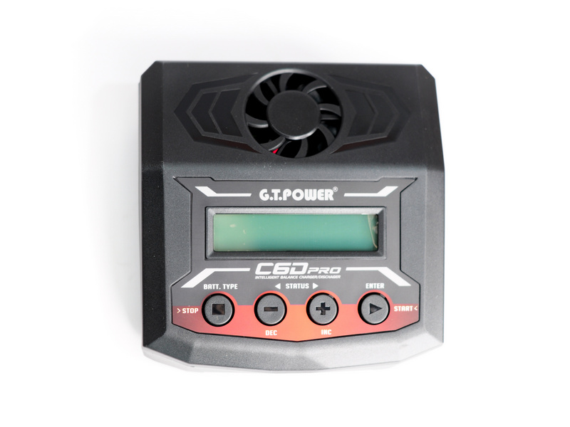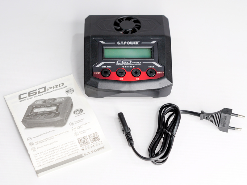 Универсальное зарядное устройство G.T.Power C6PRO Dual Power. Оснащено встроенным блоком питания, который имеет возможность работать от 220В и от аккумуляторной батареи 11-26В. Это позволяет использовать зарядное устройство в полевых условиях.