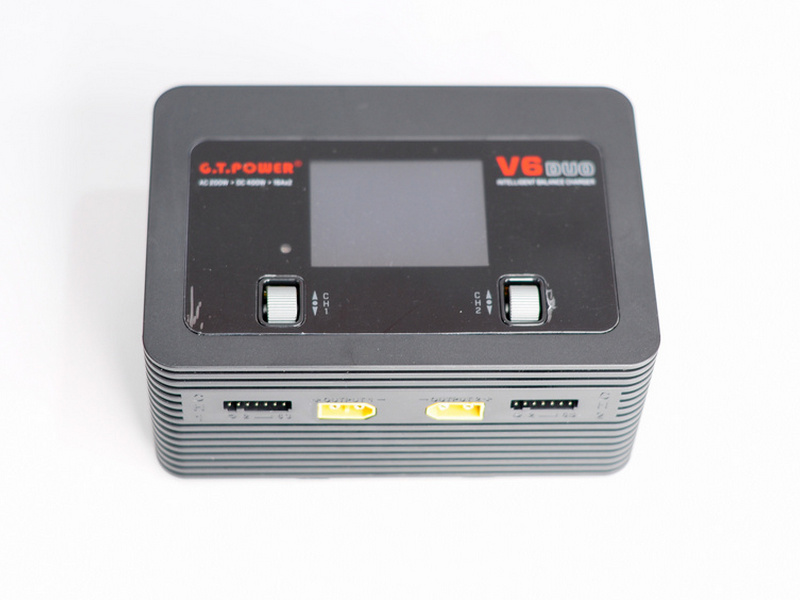 Универсальное зарядное устройство G.T.Power V6DUO Dual Power, способное одновременно заряжать два разных типа батарей.