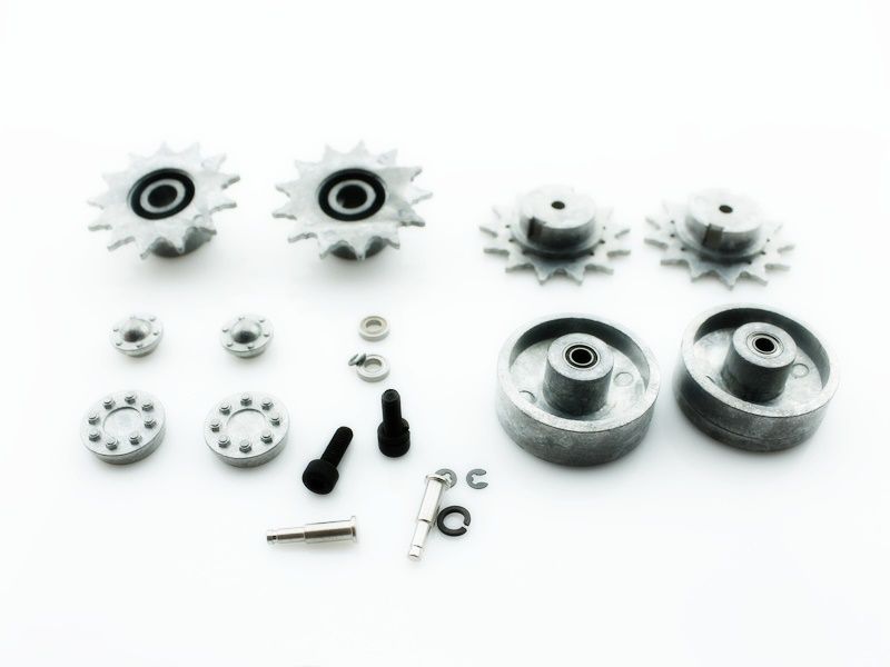 Комплект: ведущая звездочка и ленивец для радиоуправляемых танков Taigen, HengLong Sherman 76мм (3898) и Torro Sherman 76мм масштаба 1/16.