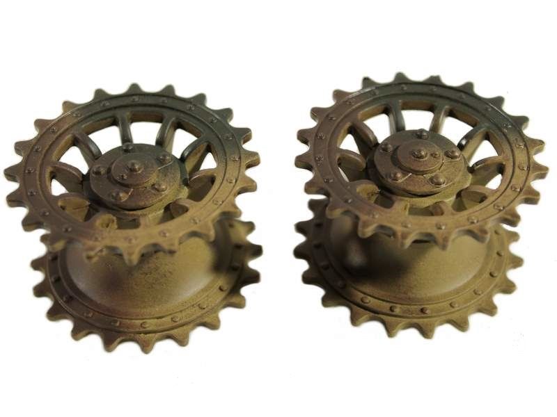 Комплект: окрашенные ведущая звездочка и ленивец для танка Taigen Tiger 3818 (поздняя версия).Материал: металл