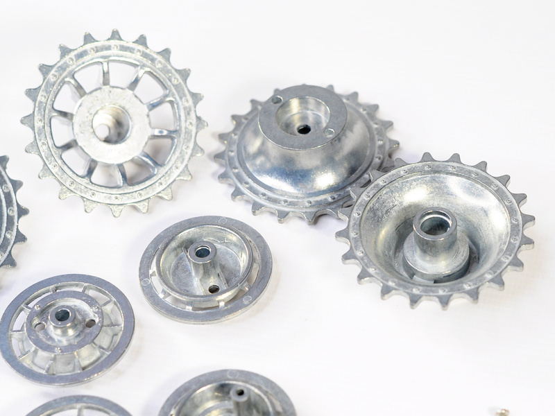 Комплект: ведущая звездочка и ленивец для танка Taigen Tiger 3818 (поздняя версия).Материал: металл