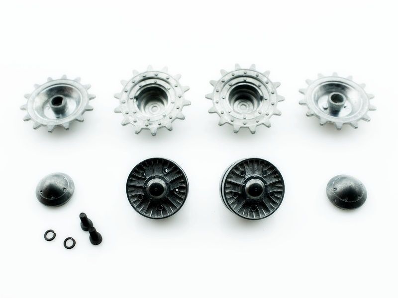 Металлические колёса (ведущая звездочка и ленивец) для радиоуправляемых танков Taigen ИС-2 (3928) масштаба 1/16.Характеристики: