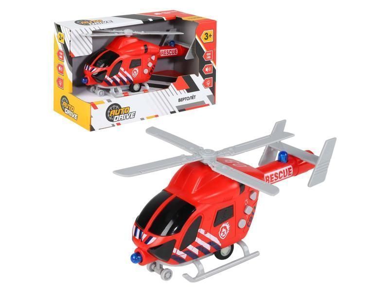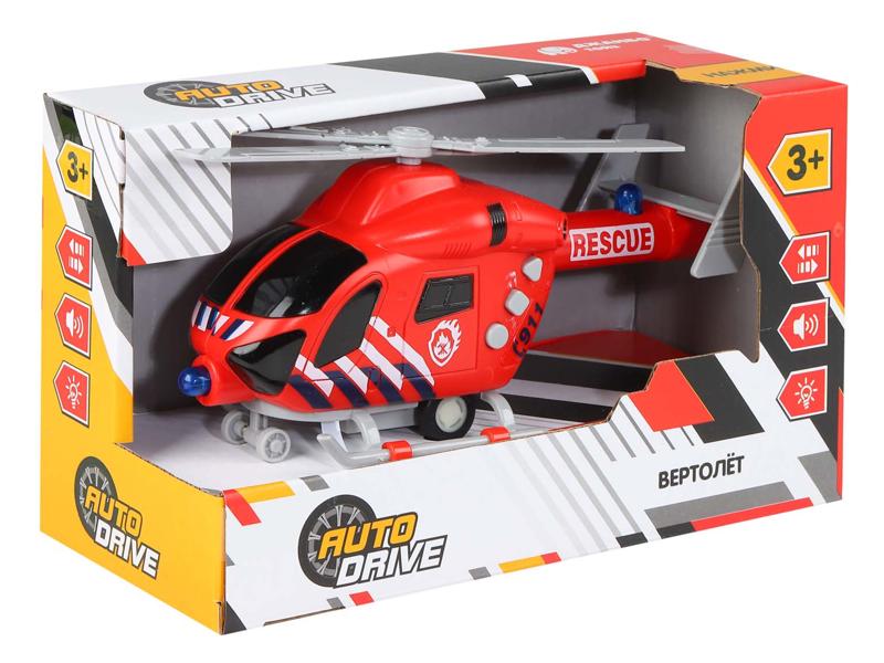 Вертолет AUTODRIVE 20см инерц. на бат. со светом и звуком, красный, в/к 22,5*10*13,5, ,