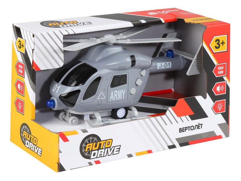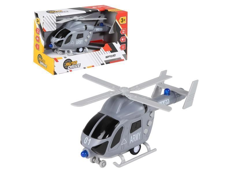 Вертолет AUTODRIVE 20см инерц. на бат. со светом и звуком, серый, в/к 22,5*10*13,5, ,