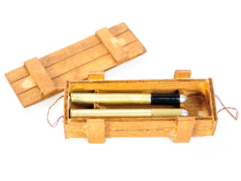 Ящик боеприпасов и два снаряда для танка Taigen Tiger 3818.