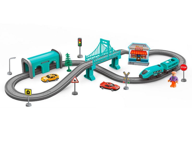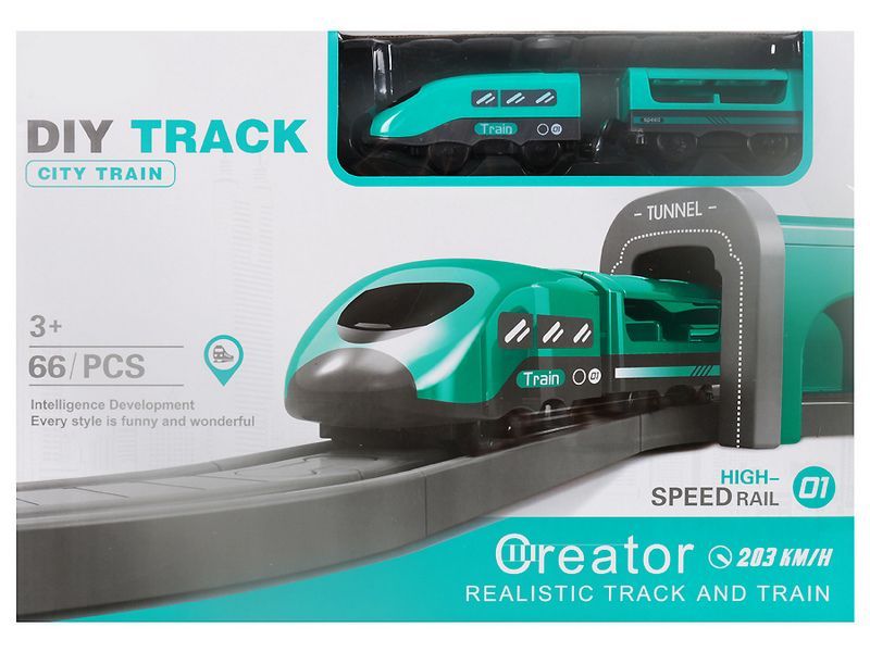 Станьте машинистом миниатюрной модели товарного состава на детской железной дороге. Во время путешествия локомотив пройдёт не только по прямому участку дороги, но и пролетит по железнодорожному мосту и сквозь туннель. Загрузите грузовой вагон и отправьтесь в пункт назначения. К железнодорожному полотну можно подъехать на миниатюрных автомашинках и проследить за движением поезда. Для звукового сопровождения (звуковые эффекты) необходимо установить батарейки в модуль.