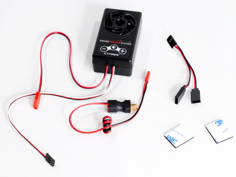 Звуковая система G.T.Power с 58 видами звуков, подходящих для нескольких типов RC автомобилей. Включает звуки двигателя, тормоза, звук остановки двигателя, клаксон и так далее.